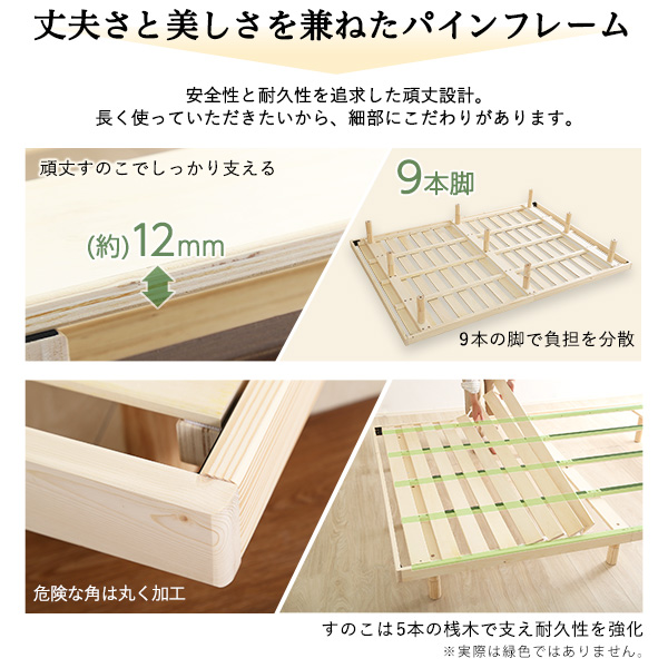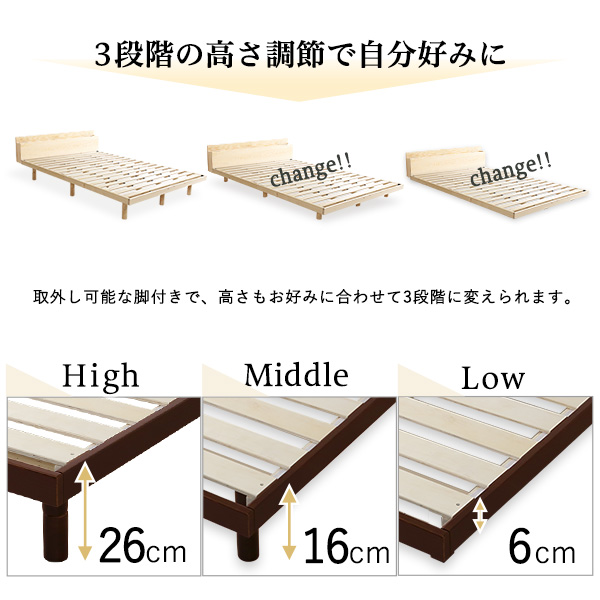 【宮セット】パイン材高さ3段階調整脚付きすのこベッド(ダブル)