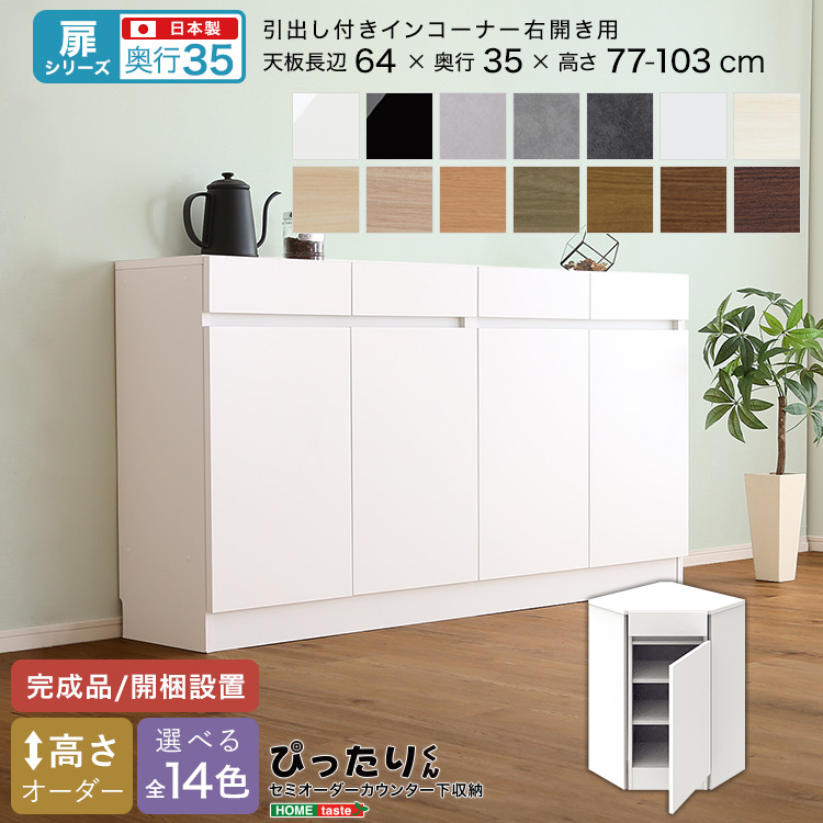 【扉シリーズ】セミオーダーカウンター下収納ぴったりくん 引出し付きインコーナー右開き 奥行30cm