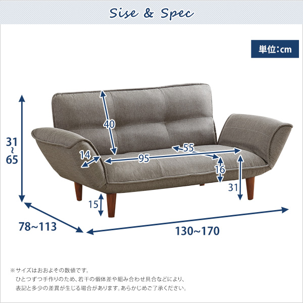 外寸:(約)幅130〜170x奥行き78〜113x高さ31〜65cm