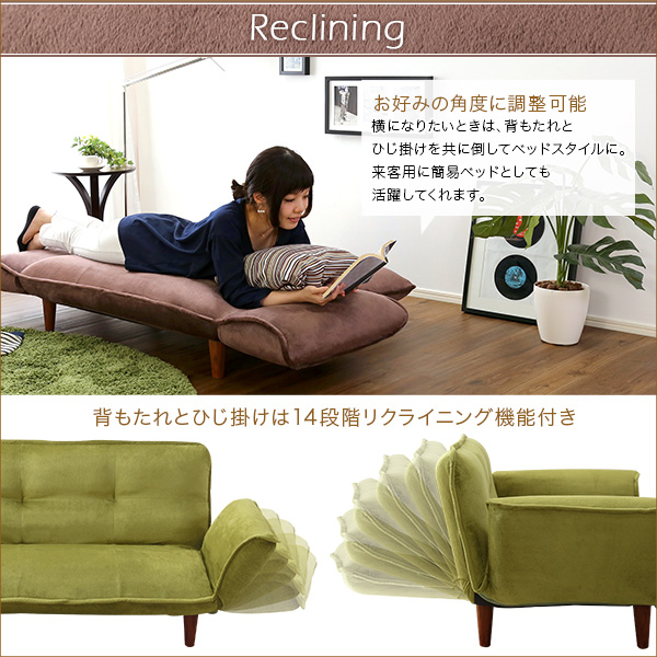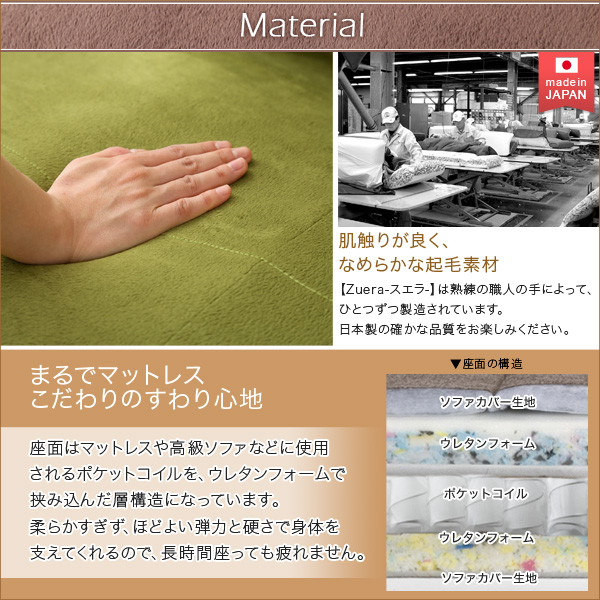 コンパクトカウチソファ【Zuera-スエラ-】(ポケットコイル リクライニング 起毛タイプ 日本製)