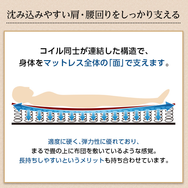 前の商品 次の商品 ボンネルコイルスプリングマットレス【-Michelia-ミケリア】(ダブル用)※ロール梱包でラクラク搬入可能!※ ¥130,191,432,080 ボンネルコイルスプリングマットレス【-Michelia-ミケリア】(ダブル用)※ロール梱包でラクラク搬入可能!※個 お買い物カゴに追加 商品コード: 900310 カテゴリー: 収納家具 説明 レビュー (0) 説明 サイズ 外寸:(約)幅140cmx長さ195cmx高さ16cm ※商品重量:(約)27kg カラー アイボリー 素材 側地:ポリエステル100% 中材:ボンネルコイル、ウレタンフォーム、キルト、フェルト、不織布 その他 ・完成品でのお届けです ・梱包サイズ: (約)28cmx28cmx142cm ・梱包重量:(約)29kg ※一度開封すると元のロール状には戻らない為、開封場所にはご注意下さいませ。 レビュー レビューはまだありません。 “ボンネルコイルスプリングマットレス【-Michelia-ミケリア】(ダブル用)※ロール梱包でラクラク搬入可能!※” の口コミを投稿しますメールアドレスが公開されることはありません。 ※ が付いている欄は必須項目です評価 * 評価… 最高 良好 平均 良くない 悪い レビュー *名前 メール Opens in a new window この商品をツイートする Opens in a new window Facebook で共有 Opens in a new window この商品をピンする Opens in a new window この商品をメールする 関連商品 クイックビュー セール クイックビュー 収納家具天然木をふんだんに使ったナチュラルシリーズ <組立家具/NATURAL SIGNATURE 伸縮ボード> ¥19,800 元の価格は ¥19,800 でした。¥14,000現在の価格は ¥14,000 です。 お買い物カゴに追加 クイックビュー セール クイックビュー 収納家具天然木素材のモダン学習デスク<デスクワゴン トライ-R/kiduku> ¥13,999 – ¥16,999価格帯: ¥13,999 – ¥16,999 オプションを選択 この商品には複数のバリエーションがあります。 オプションは商品ページから選択できます クイックビュー セール クイックビュー 収納家具北欧スタイルのスリムなトールシェルフ<540Pシェルフ ジェロディ> ¥20,900 元の価格は ¥20,900 でした。¥18,999現在の価格は ¥18,999 です。 お買い物カゴに追加