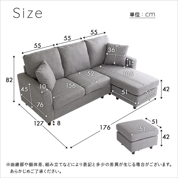 (約)幅176cmx奥行76cm~127cmx高さ82cm