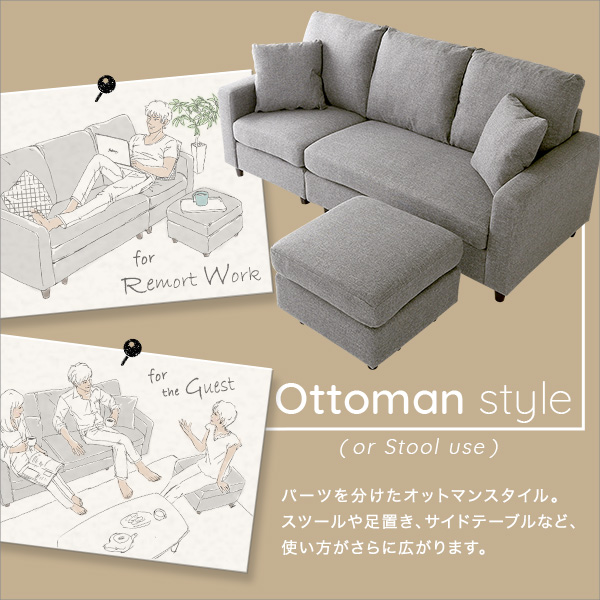北欧インテリア 3人掛けコンパクトカウチソファ【lugna-ルグナ-】
