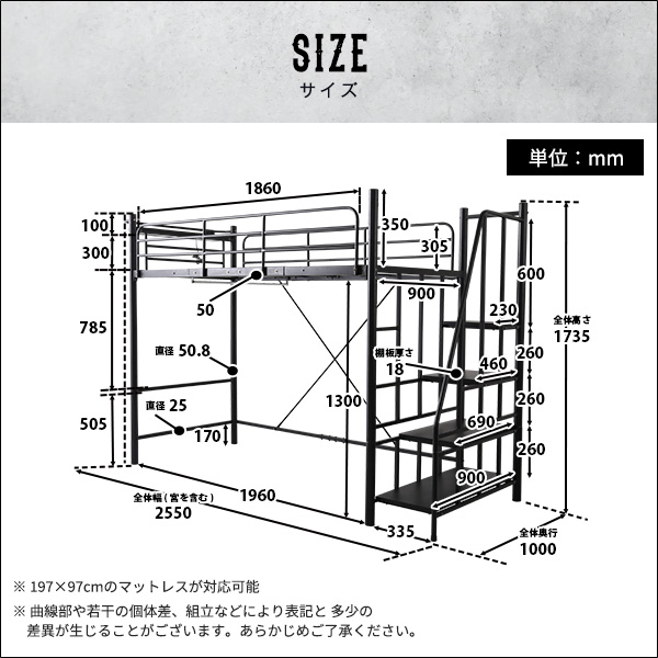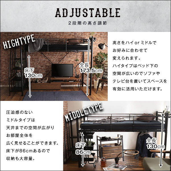 階段付きヴィンテージロフトベッド【BROOK】